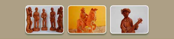 J.L.F. worked in construction until he was 28 years old and then began to make his living as an artist. He started in earnest, he says, when he noticed the Centro Mestre Noza one day when he was in Juazeiro, and he became aware that the Center would buy the small, finely detailed sculptures that he was making. Today, J.L.F. works as a musician as well as a sculptor and runs a small convenience store in front of his home.
